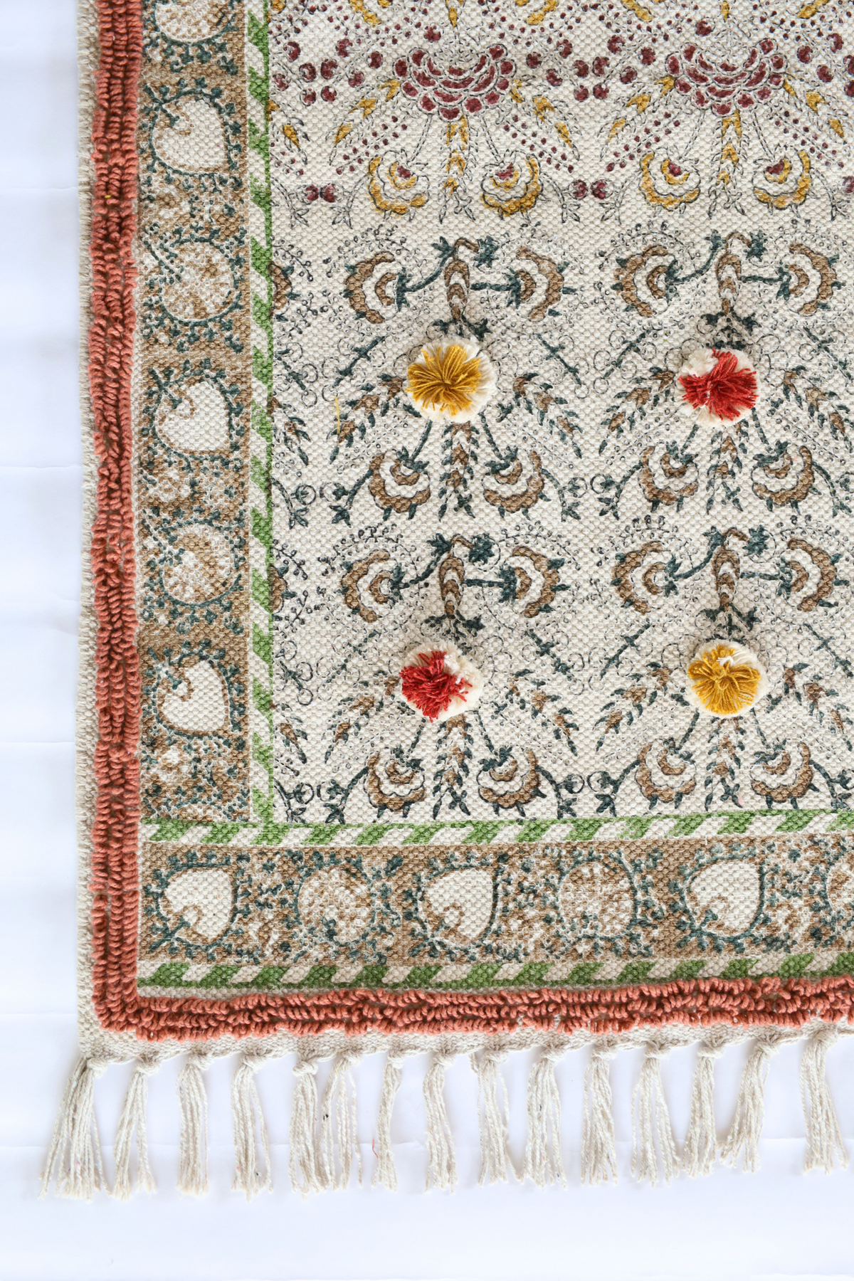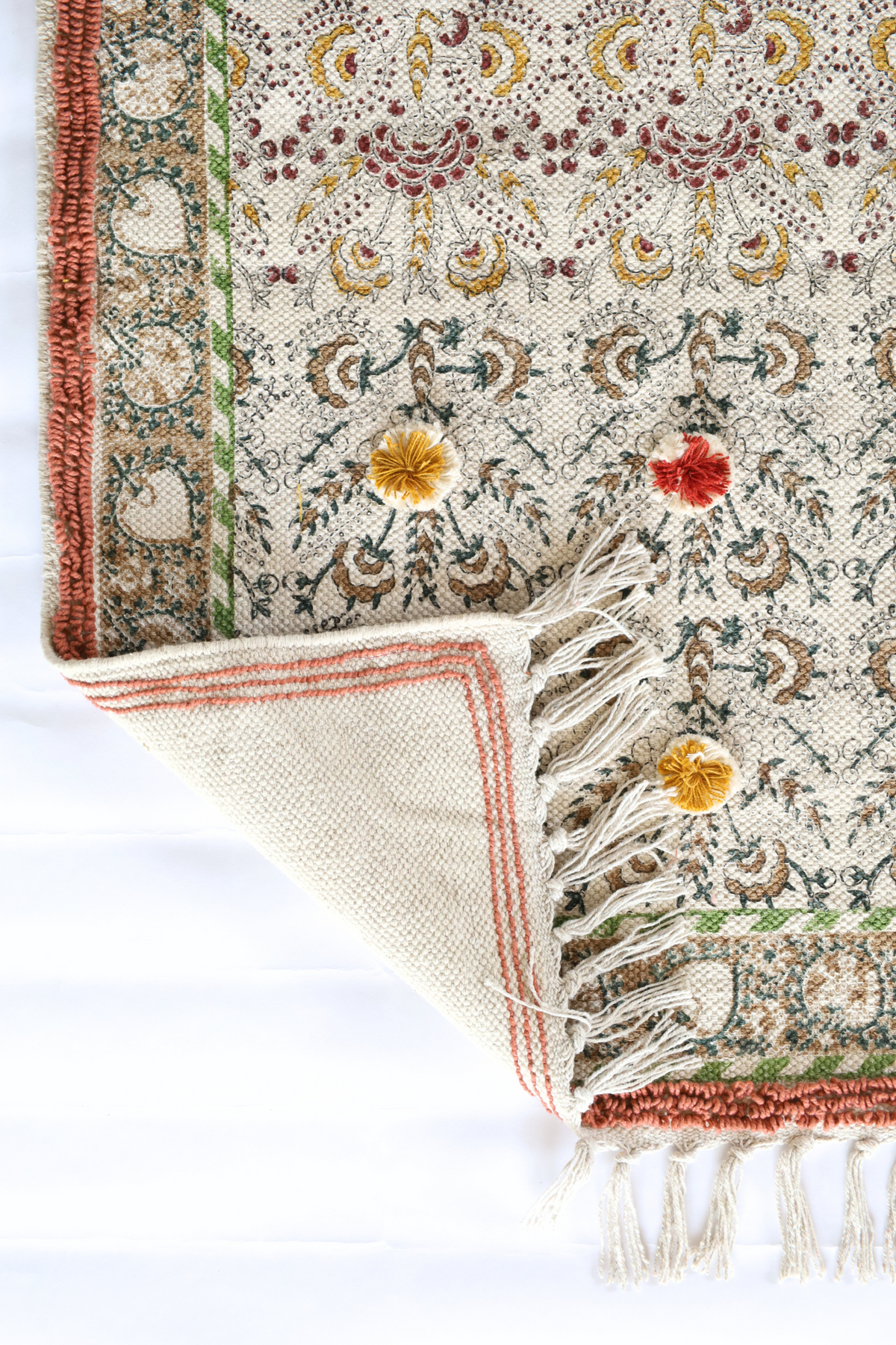 We designed this rugs which give a peace to your eyes and breathe to your feet by blend with the handcrafted technique of block print and embroidery.